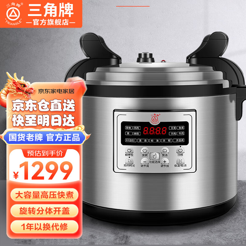 三角牌(Triangle) 商用电锅 大容量电高压锅 特大号大电饭煲/酒店/饭店/食堂/煮饭煲汤炖肉多用途汤锅饭锅 适合25-35人丨 17L价格:1299.00元!