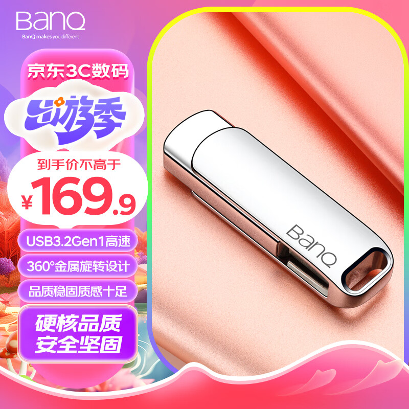 banq 512GB USB3.2 Gen1 U盘 F61高速版 全金属电脑车载两用优盘360度旋转 移动商务大容量upan防震价格:169.90元!