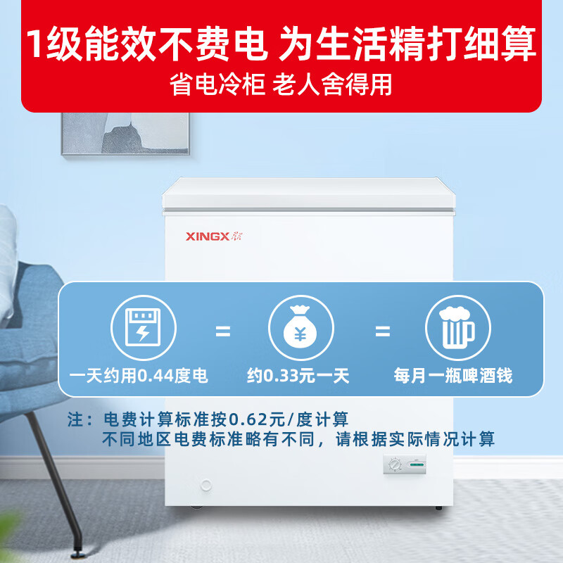 星星(XINGX)140升家用商用减霜净味冰柜 冷藏冷冻转换冷柜 节能顶开冰箱 BD/BC-140QJ价格:749.00元!
