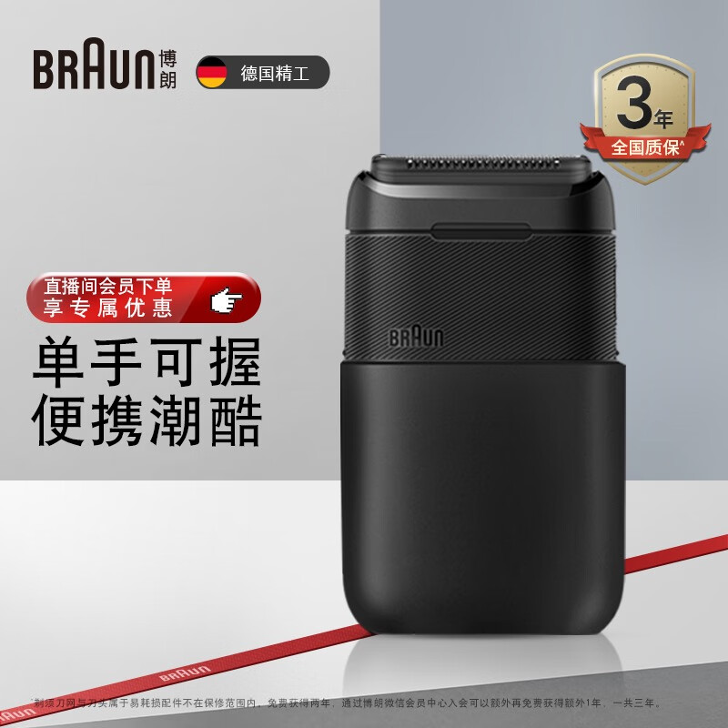 博朗(BRAUN)X系黑色M1000便携式mini电动剃须刀刀头往复式剃须刀刮胡刀男士生日礼物 男差旅便携价格:279.00元!
