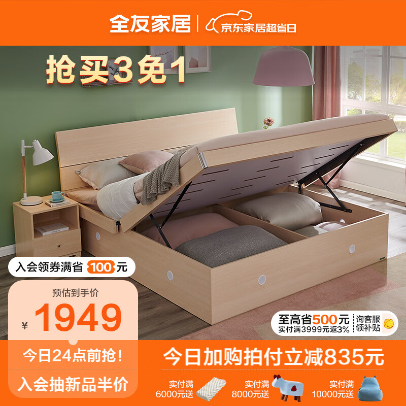 全友家居 床 现代简约木纹双人高箱床106302价格:2784.29元!
