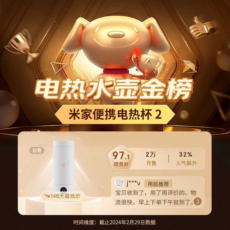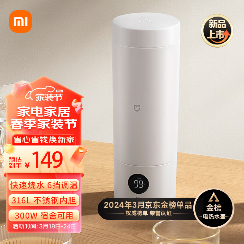 米家小米电热水杯加热杯热水壶 车载保温烧水杯 迷你便携式旅行出差 智能恒温 316L不锈钢无异味 白色价格:149.00元!