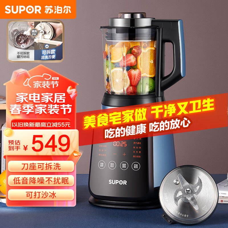 苏泊尔(SUPOR)破壁机 家用1.75L大容量多功能破壁机降噪可预约豆浆机早餐机辅食机研磨机 SP902S价格:549.00元!
