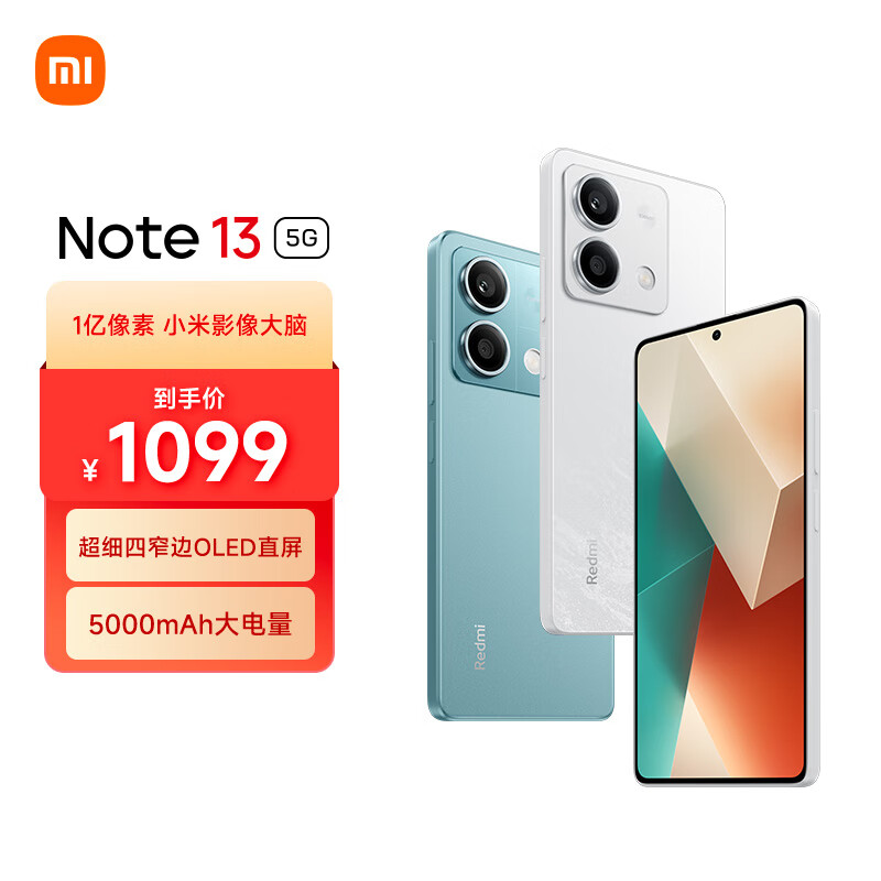 小米(MI)Redmi Note13 5G 1亿像素 超细四窄边OLED直屏 5000mAh大电量 8GB+128GB 星沙白 小米手机红米手机价格:1099.00元!