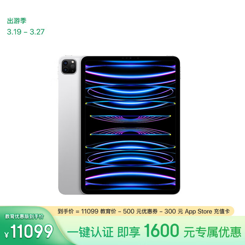 Apple/苹果【教育优惠】 iPad Pro 11英寸 2022年款(1TB WLAN版/M2芯片/MNXL3CH/A)银色价格:11899.00元!