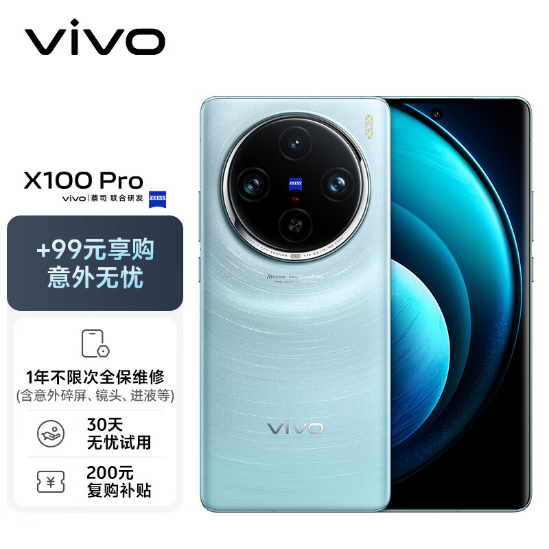 vivo X100 Pro 16GB+1TB 星迹蓝【意外无忧套装】蔡司APO超级长焦 蓝晶×天玑9300 5400mAh蓝海电池 手机价格:6098.00元!