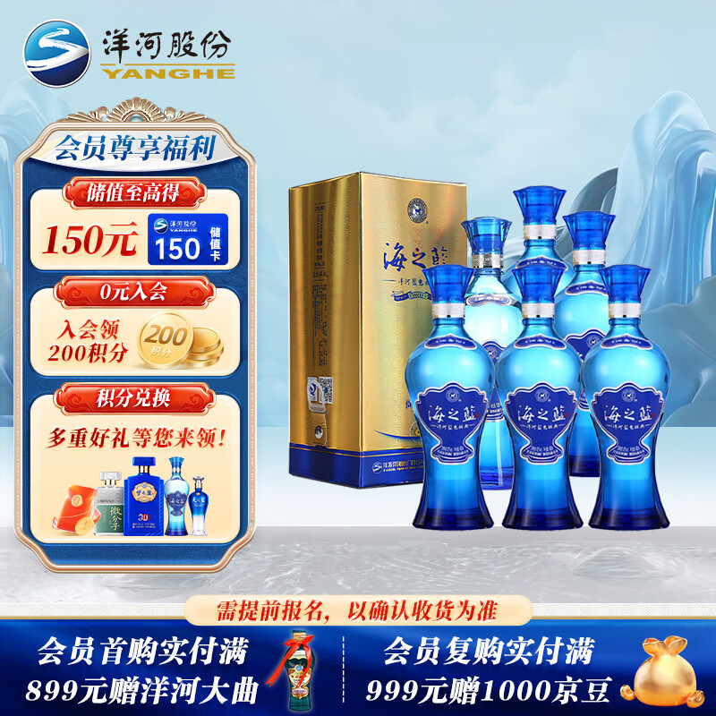 洋河蓝色经典 海之蓝 42度 520ml*6瓶 整箱装 浓香型白酒价格:988.00元!