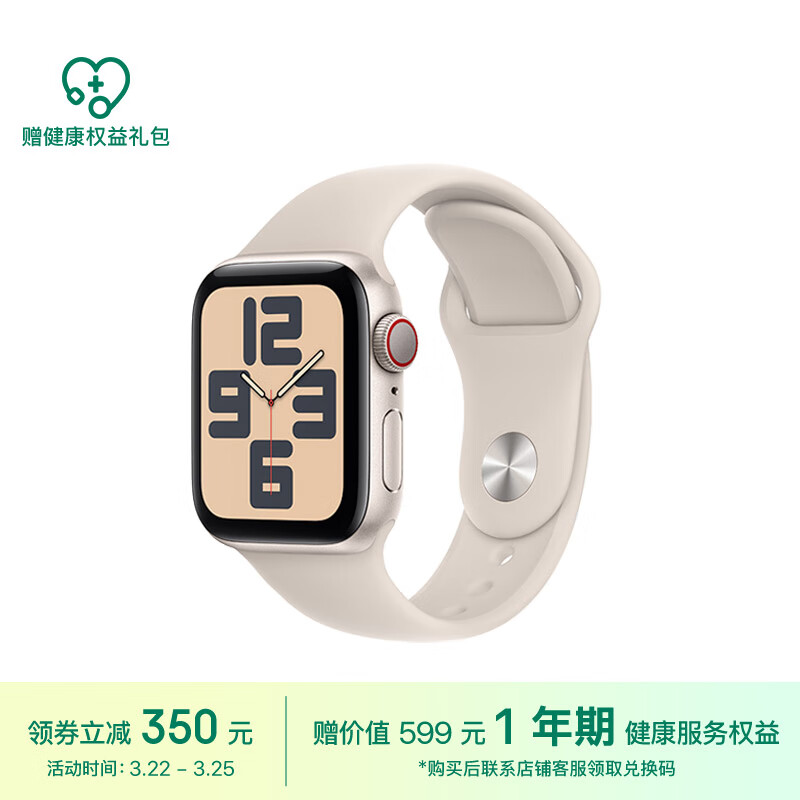 Apple/苹果 Watch SE 2023款智能手表GPS+蜂窝款40毫米星光色铝金属表壳星光色运动型表带S/M MRFY3CH/A价格:2399.00元!