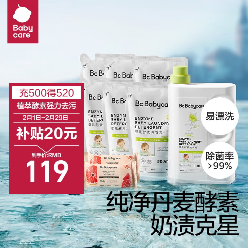 babycare婴儿洗衣液 无酒精宝宝专用儿童酵素去污洗衣液(4.8L+2西柚皂)价格:119.00元!
