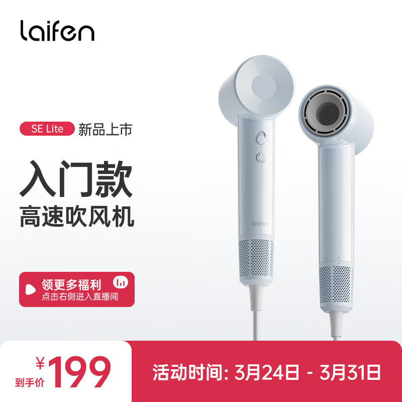 徕芬Laifen SE Lite 家用入门款高速吹风机 莱芬大风力速干低噪音便携风筒 SE lite蓝灰色价格:199.00元!