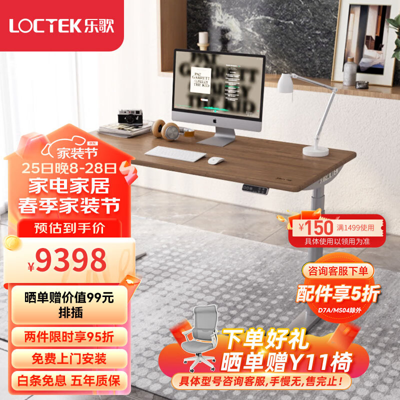 乐歌电动升降桌电脑桌站立办公学习桌E6-HD/1.8m实木黑胡桃木色套装价格:10418.00元!