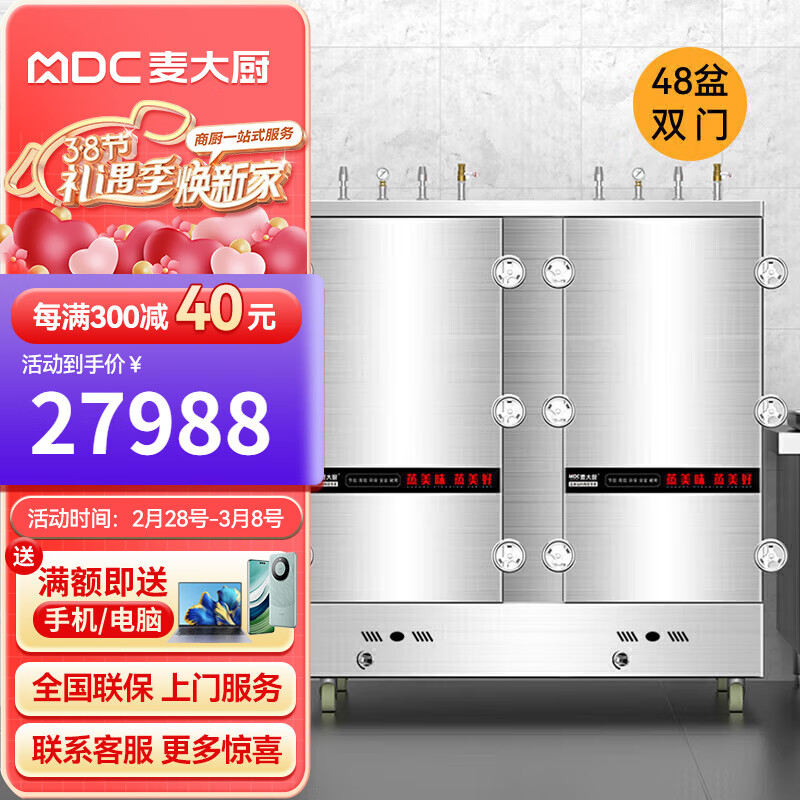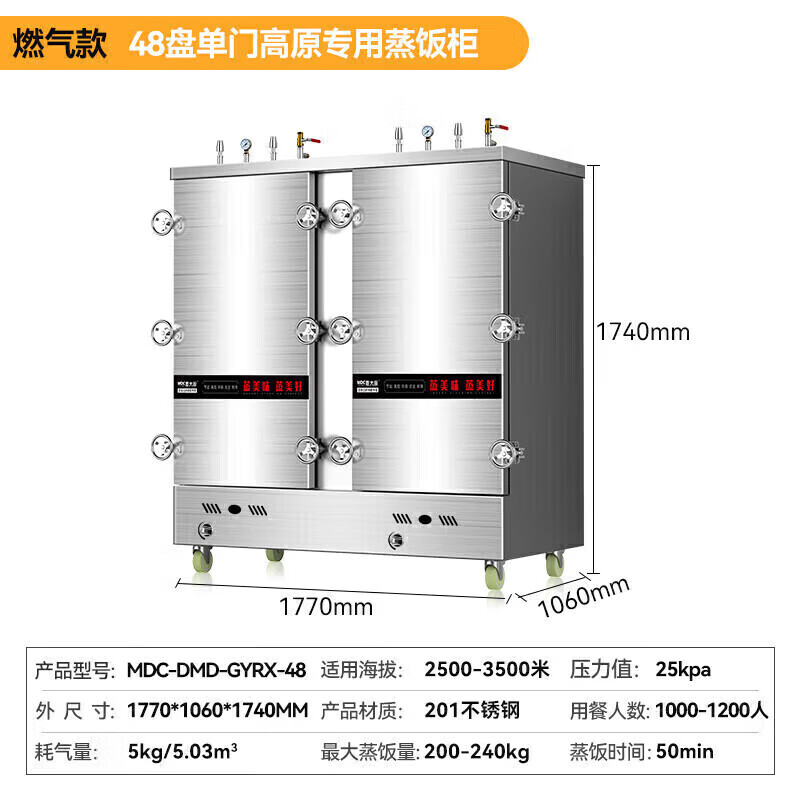 麦大厨 蒸饭柜商用蒸箱蒸包炉蒸馒头蒸饭车食堂酒店饭店厨房加厚发泡48盘燃气高原蒸柜MDC-DMD-GYRX-48价格:32268.00元!