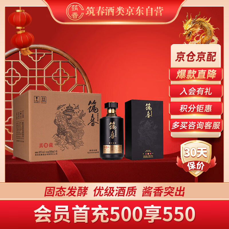 筑春 真藏10 酱香型白酒 53度 500ml*6瓶 整箱装 送礼高档价格:4639.00元!