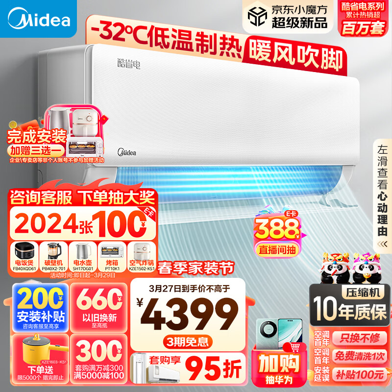 美的(Midea)空调 2匹 酷省电 新一级能效 变频冷暖 自清洁 壁挂式空调挂机除湿 智能家电 KFR-46GW/N8KS1-1价格:4395.00元!