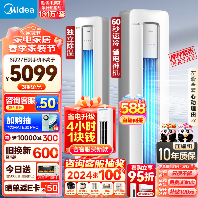 美的(Midea)空调 2匹 酷省电 新一级能效 变频冷暖 空调立式 客厅空调柜机 独立除湿 KFR-51LW/N8KS1-1价格:5099.00元!