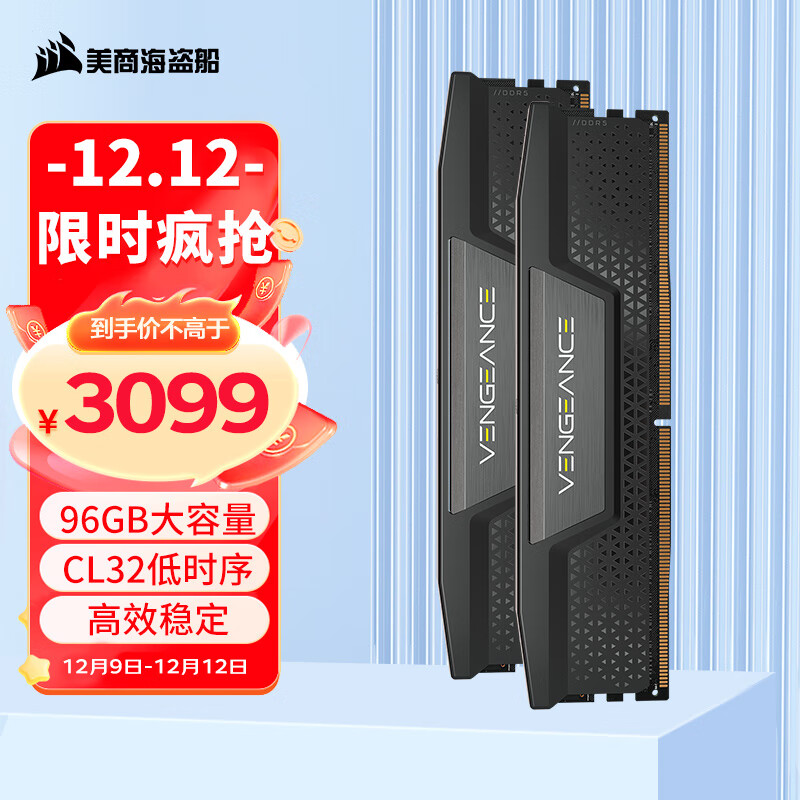 美商海盗船(USCORSAIR) 96GB(48G×2)套装 DDR5 6400 台式机内存条 复仇者系列 游戏型 黑色 CL32价格:3099.00元!