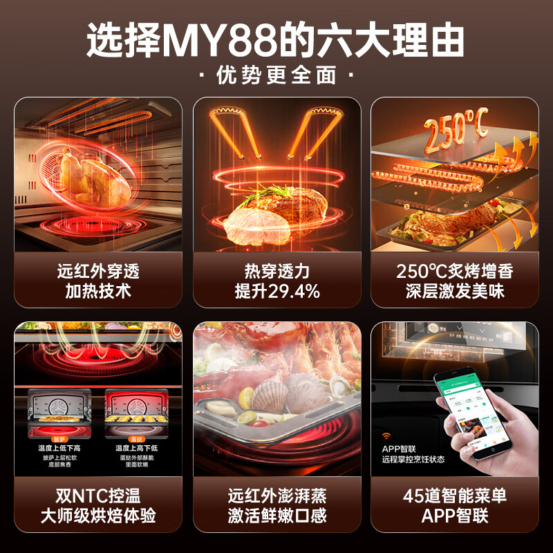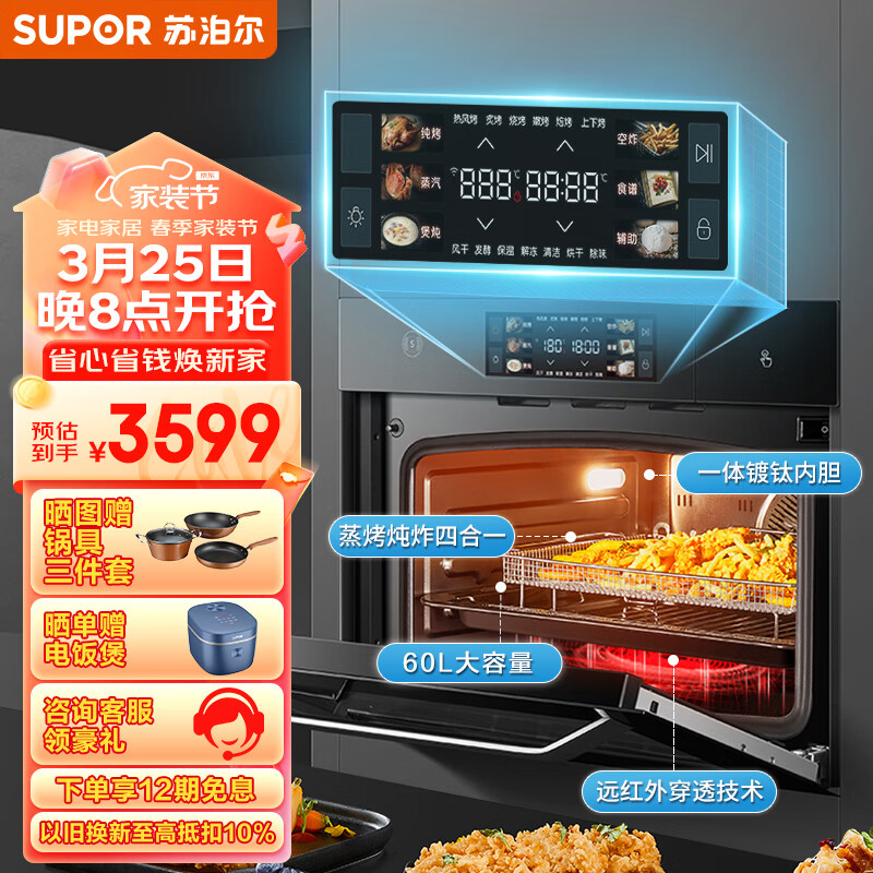 苏泊尔(SUPOR)嵌入式蒸烤箱蒸烤炖炸一体机家用智能多功能自清洁蒸箱烤箱 60L大容量精准控温APP智控 MY88蒸烤价格:3599.00元!