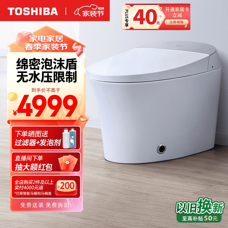 东芝(TOSHIBA)A500智能马桶一体机带水箱防溅泡沫盾脚感冲水坐便器(400坑距)价格:4999.00元!