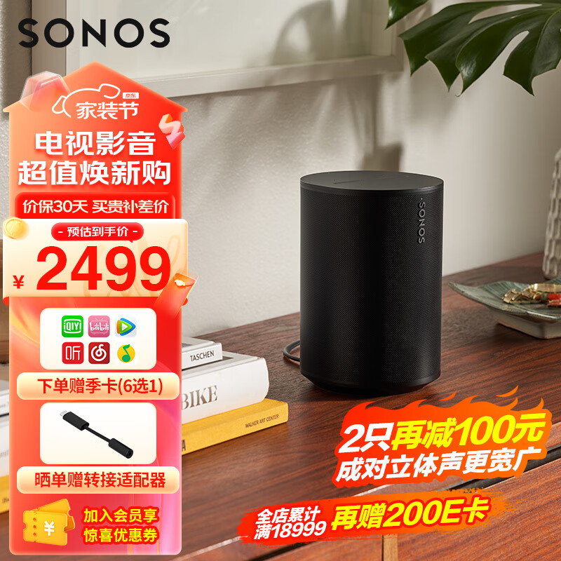 SonOS Era100 WIFI无线蓝牙 环绕可组合 家庭影院 迷你音响 One升级版 家用桌面客厅卧室书架 黑色价格:2499.00元!