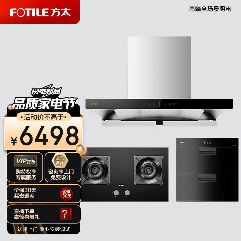 方太烟灶消三件套 24巡航风量变频抽油烟机 5.2kW猛火灶 大容量嵌入式消毒柜EMQ6T+02-TH27B+J51E价格:6498.00元!