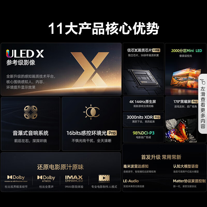 海信电视75U8KL+Bar500沉浸追剧套装 75英寸 ULED X 旗舰Mini LED 2000分区 黑曜屏 PRO 智能电视机价格:16098.00元!