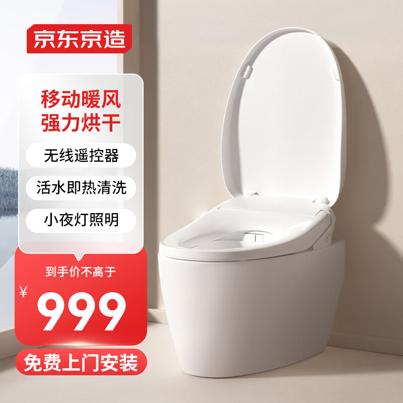 京东京造烘干Pro智能马桶盖 多档移动烘干 即热清洗? 抗菌座圈 包安装价格:1299.00元!