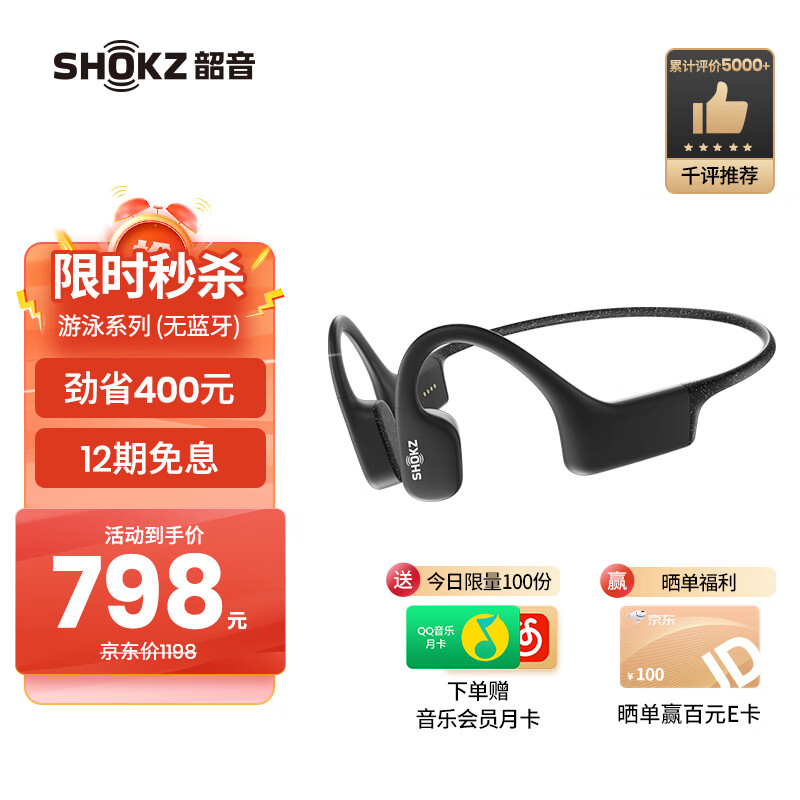 韶音(SHOKZ)OpenSwim骨传导开放式MP3播放器 不入耳式运动游泳跑步专用 IP68防水S700 曜石黑价格:798.00元!