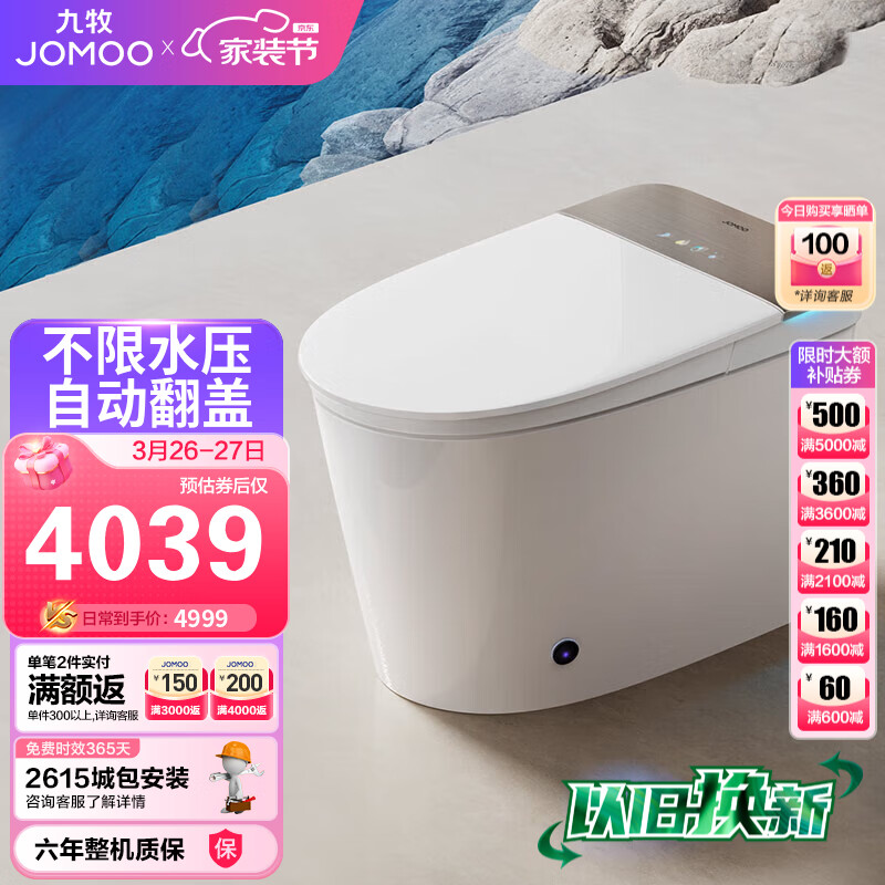 九牧(JOMOO)无水压限制智能马桶节水泡沫盾自动翻盖智能坐便器ZS770 400坑距价格:4919.00元!