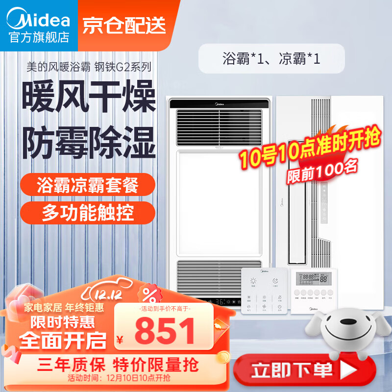 美的(Midea)浴霸风暖浴室卫生间暖风取暖器强暖照明一体集成吊顶触控款暖风机价格:929.00元!