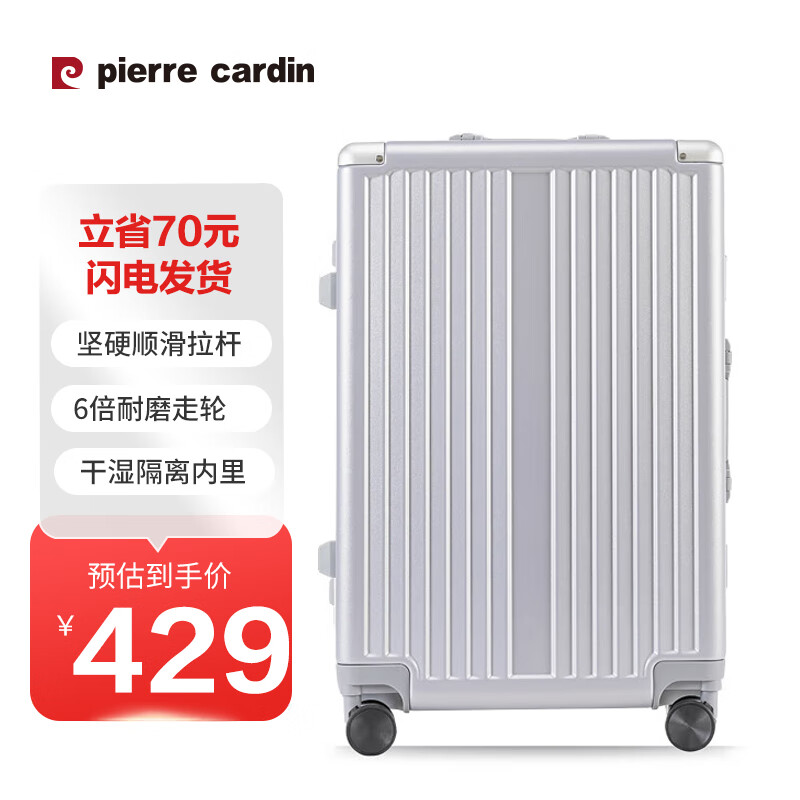 皮尔卡丹行李箱男铝框万向轮拉杆箱耐磨26英寸旅行箱密码箱女商务皮箱子价格:499.00元!