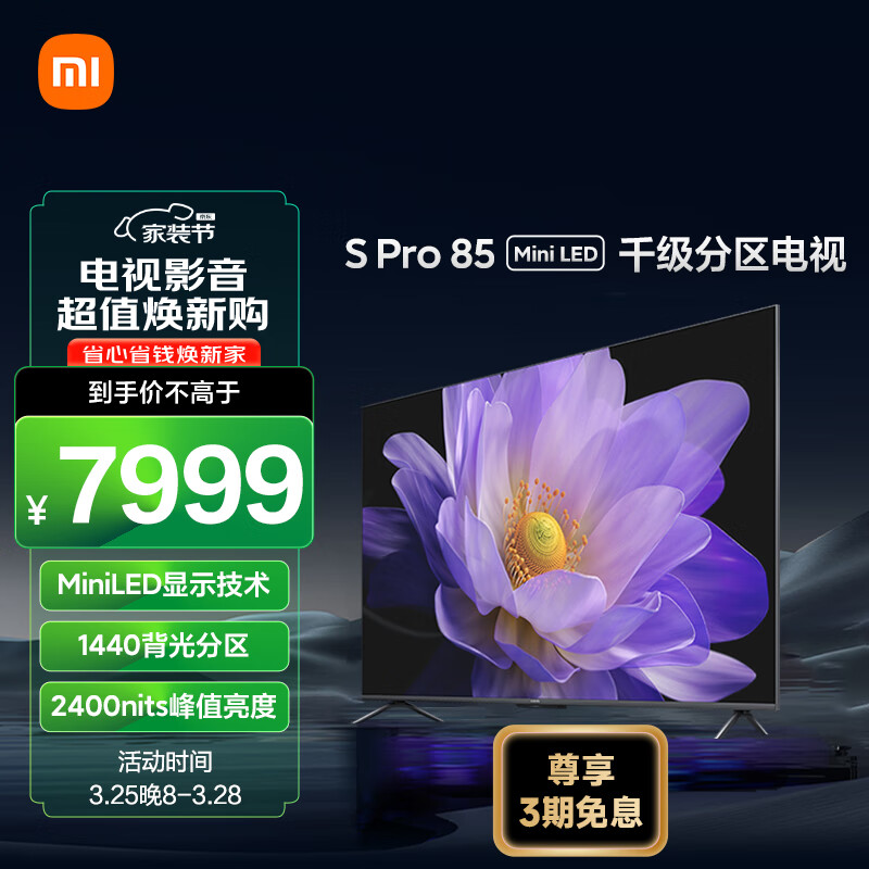 小米电视 S Pro 85英寸 Mini LED 2400nits 1440分区 4GB+64GB 小米澎湃OS系统 液晶电视机L85MA-SM价格:7999.00元!