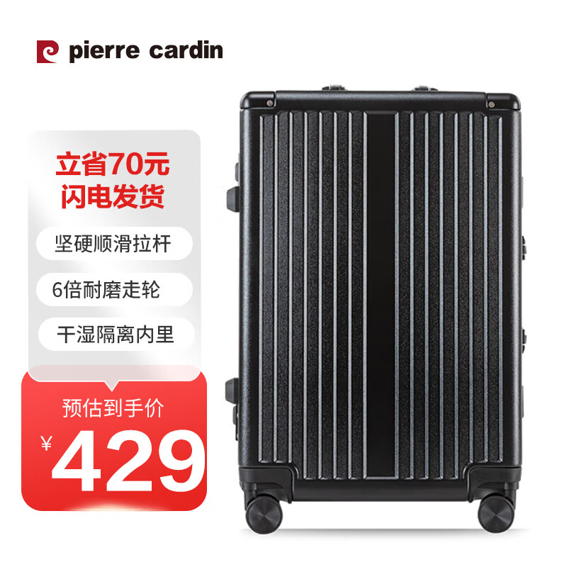 皮尔卡丹行李箱男旅行箱26英寸拉杆箱女万向轮学生皮箱大容量铝框密码箱价格:499.00元!