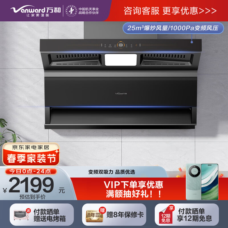 万和(Vanward)顶侧双吸油烟机 三腔直流变频抽油烟机 25m3/min大吸力 1000Pa风压 家用自清洗油烟机 WL860价格:2499.00元!