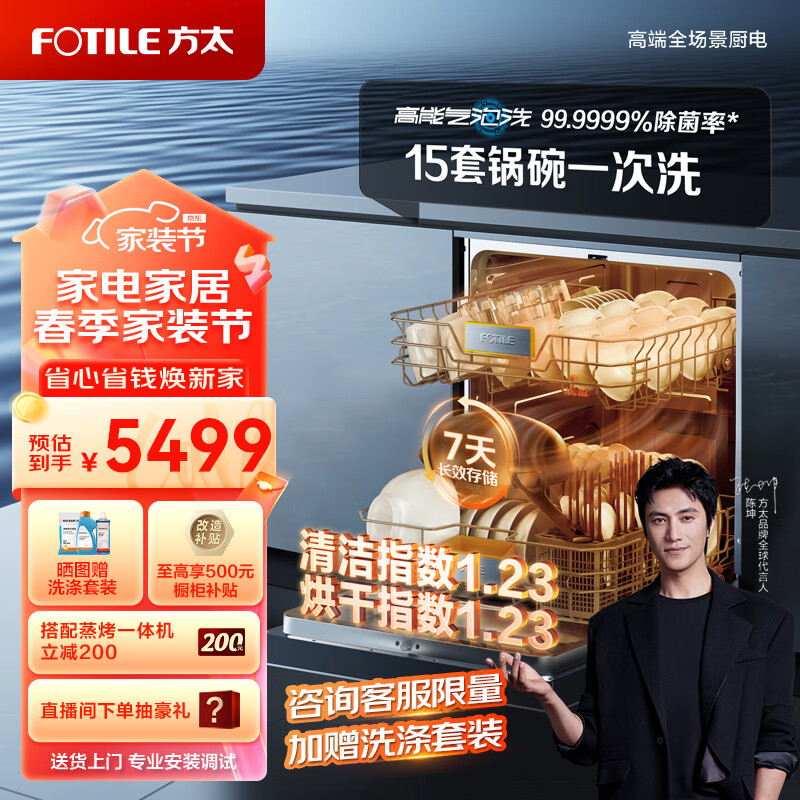 方太洗碗机嵌入式家用高能气泡洗 15套大容量洗锅不挑锅 加强除菌 7天长效存储 一级水效 劲洗魔方VJ06价格:5499.00元!