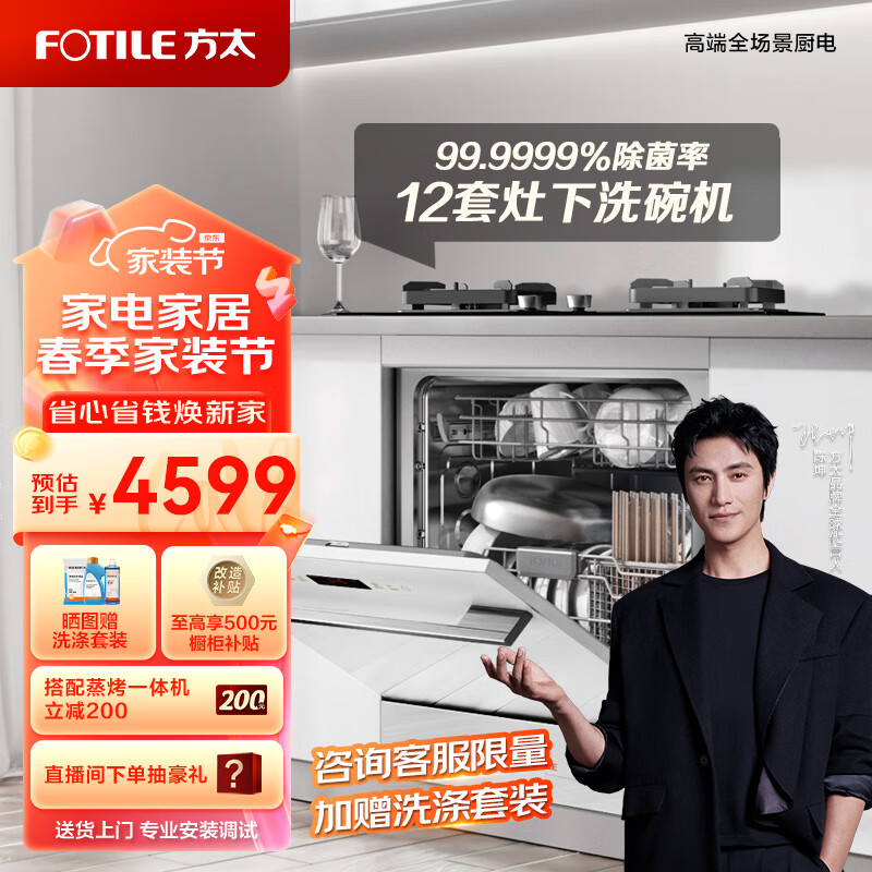 方太(FOTILE)洗碗机嵌入式家用 高能气泡洗 12套大容量 灶下洗碗机 一级水效 30min超快洗02-N1价格:4599.00元!