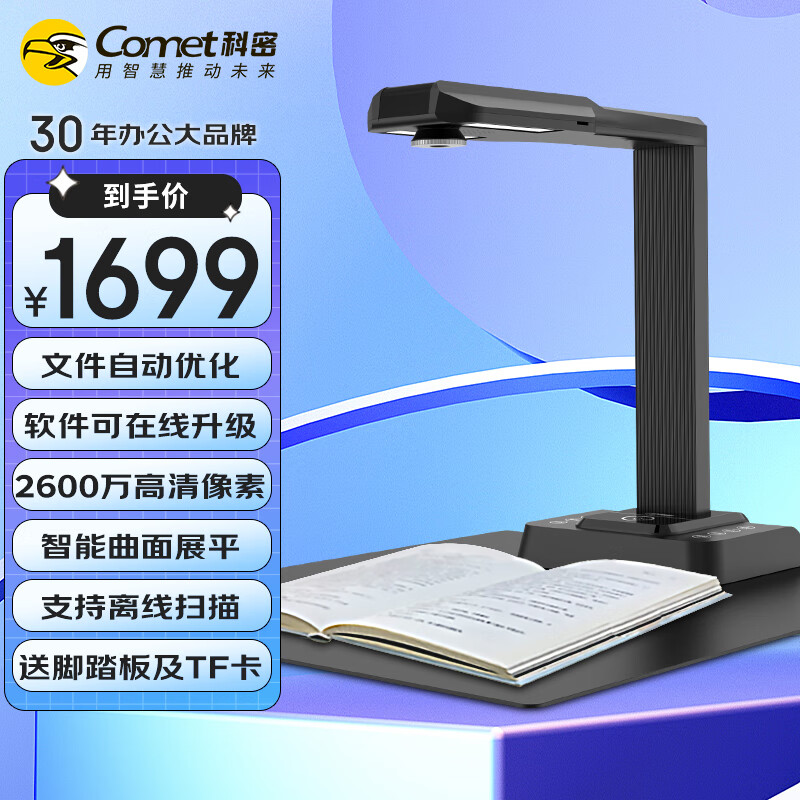 科密(comet) GP2318Z 高拍仪 2600万高清像素 可在线升级扫描仪 A3A4文件图片证件 HDMI接口 书籍展平成册价格:1899.00元!