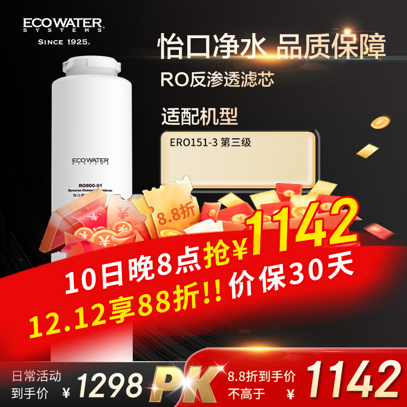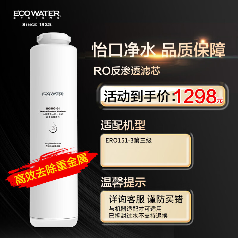 怡口净水(ECOWATER) 反渗透膜RO滤芯RO800-01 适用ERO151-3系列价格:1298.00元!