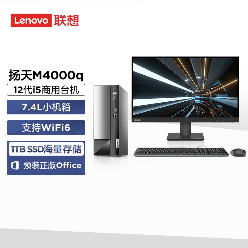 联想(Lenovo)扬天M4000q 英特尔酷睿i5 商用办公台式机电脑主机(12代i5-12400 16G 1TB SSD Win11)27英寸价格:4199.00元!