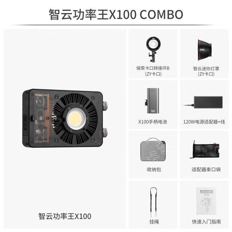 zhi yun智云功率王X100便携直播补光灯美颜拍照摄影影棚灯室内室外人像拍摄灯100W COB口袋灯X100 COMBO价格:1999.00元!