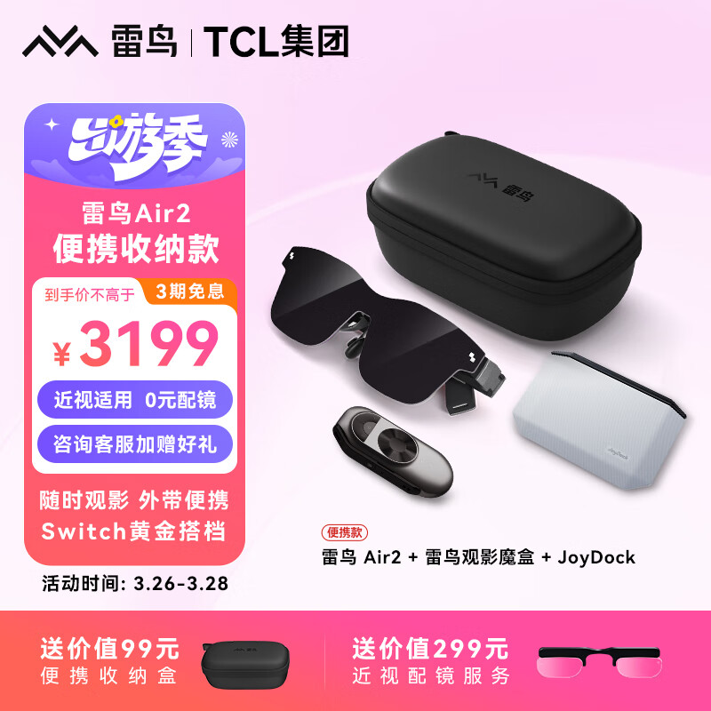 雷鸟Air2 便携收纳款 智能AR眼镜 高清巨幕观影眼镜 120Hz高刷 魔盒+JoyDock全适配套装 送男友礼物价格:3799.00元!