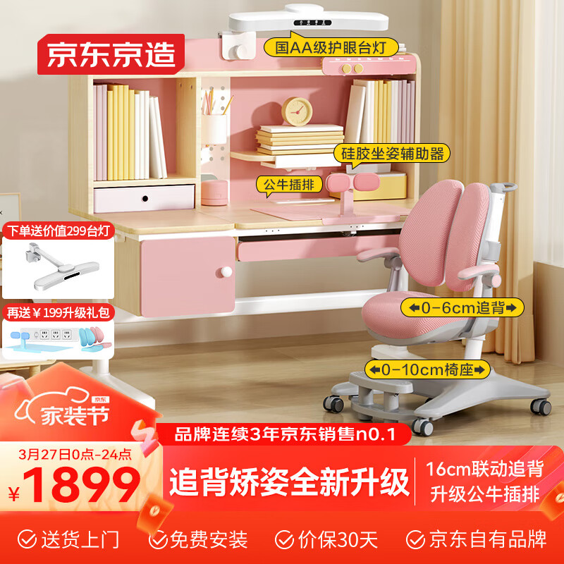 京东京造儿童书桌学习桌椅写字桌【进口实木 追背矫姿 AA台灯 】1.2m粉pro价格:2099.00元!
