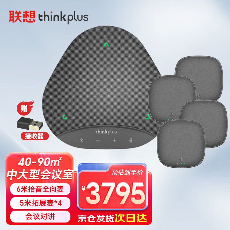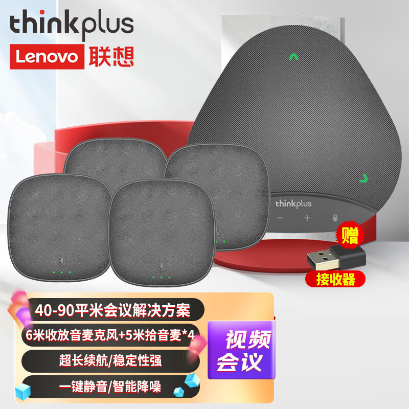 联想thinkplus视频会议全向麦克风蓝牙全向麦克风音响拾音会议扬声器适用40-90平米(全向麦+收音*4)价格:4080.00元!