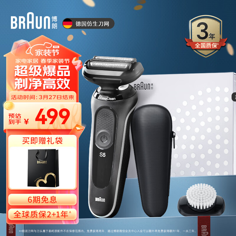 博朗(BRAUN)高效5系电动剃须刀礼盒款往复式刮胡刀礼盒男士男朋友生日礼物送男友送老公送男友价格:499.00元!