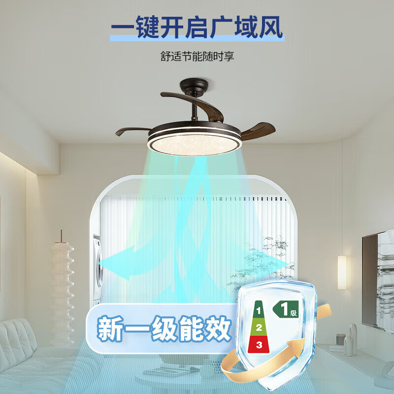 雷士(NVC)风扇灯吊扇灯北欧餐厅卧室黑色led灯具全光谱1级能效遥控42寸36瓦价格:583.00元!