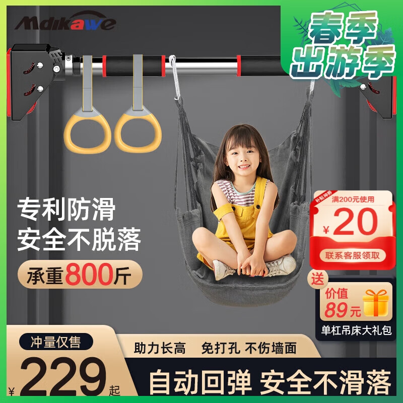 曼迪卡威(Mdikawe)单杠引体向上器成人家用儿童室内单杆门框免打孔健身器材秋千吊床价格:269.00元!