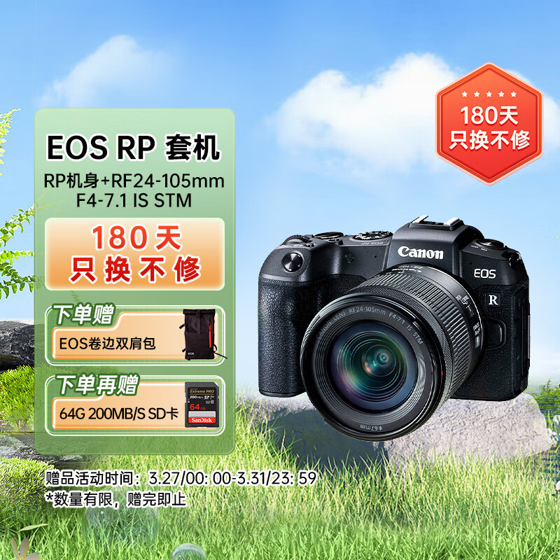 佳能(Canon)EOS RP 全画幅微单数码相机 24-105标准镜头套装 (约2620万像素/轻巧便携)价格:9999.00元!