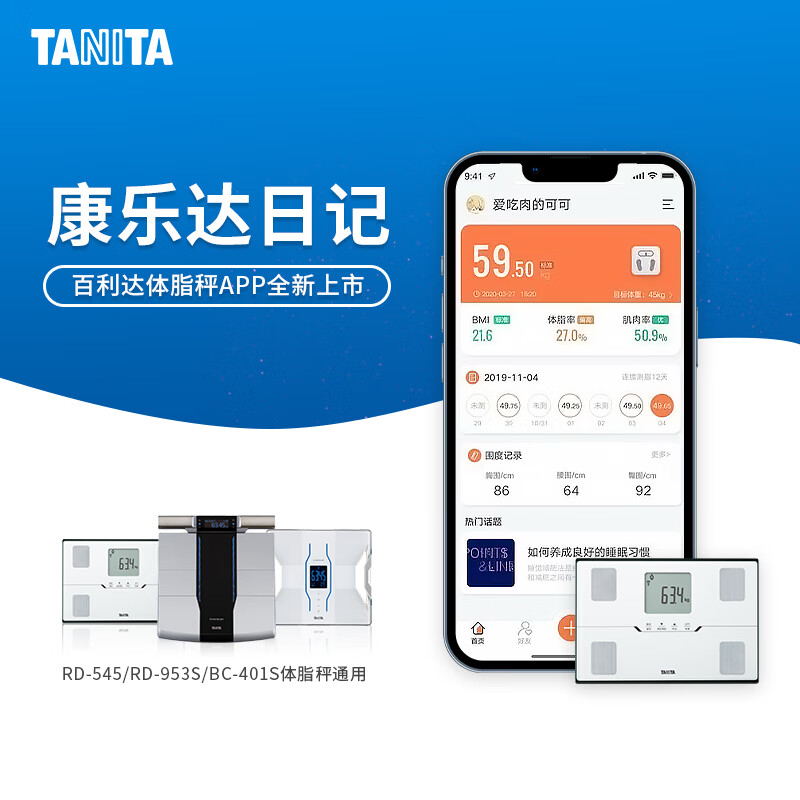 百利达(TANITA)BC-401S四电级家用智能体脂秤 日本品牌蓝牙电子健康体重秤 黑色价格:499.00元!