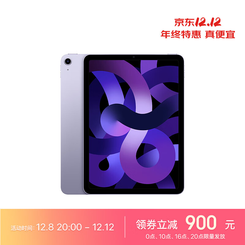 Apple iPad Air(第 5 代)10.9英寸平板电脑 2022年款(64G WLAN版/学习办公娱乐游戏/MME23CH/A)紫色价格:4799.00元!