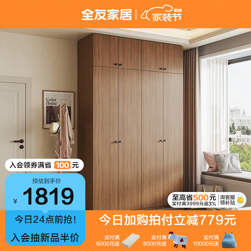 全友家居 四门衣柜简约风卧室衣物收纳百搭多规格平开门家具DG10009价格:2598.57元!