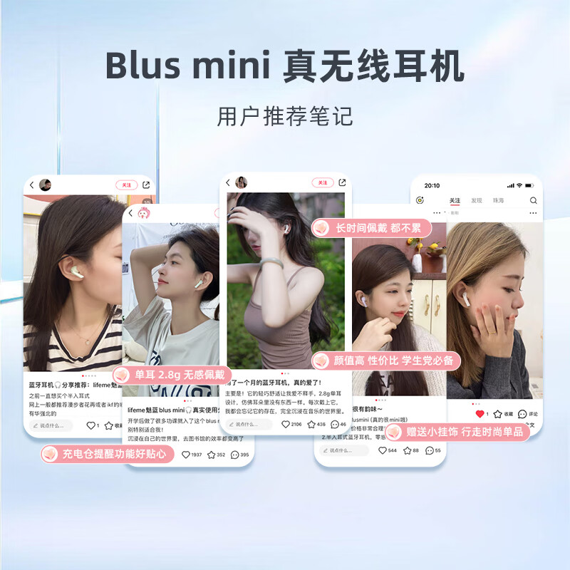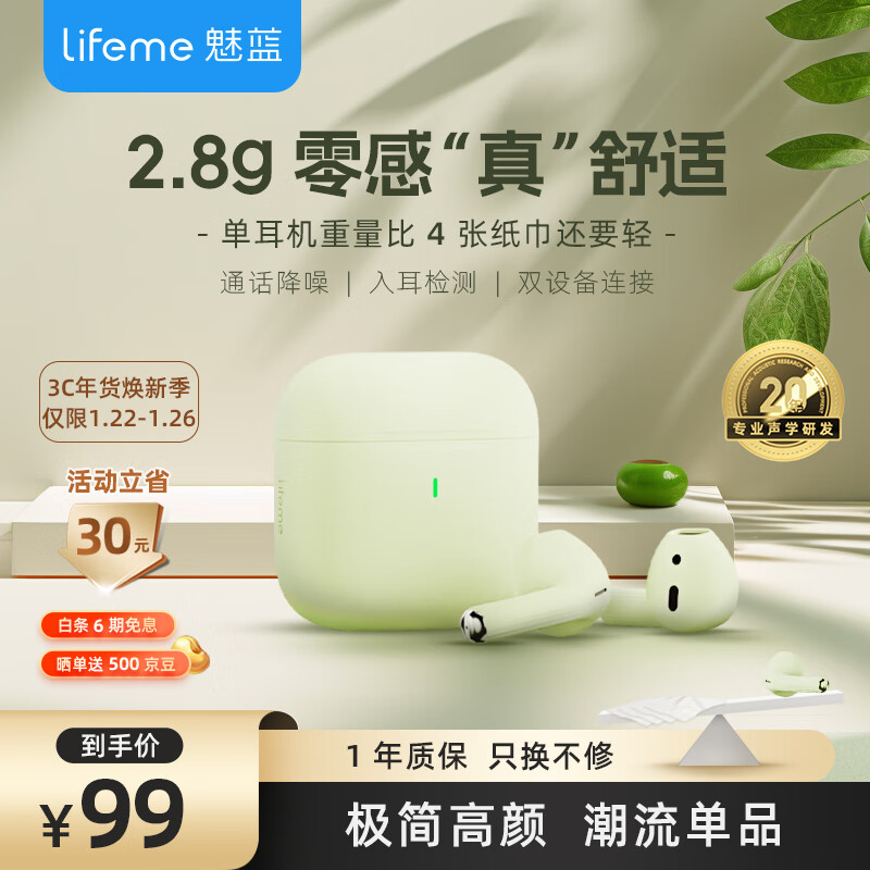 魅蓝魅族lifeme Blus mini半入耳式蓝牙耳机 真无线蓝牙5.3通话降噪轻小耳机 适用苹果华为小米手机 绿价格:97.90元!